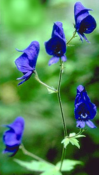 Род Аконит (АсопКипл), или, как его еще называют, "борец", объединяет более трехсот видов многолетних растений, распространенных преимущественно в северном полушарии. В нашей стране их насчитывают менее пятидесяти. Многие виды, а также сорта, полученные на их основе, весьма декоративны и выращиваются в садах. Кроме широко распространенных в лесной зоне России а. северного и а.высокого, с цветками фиолетовых оттенков, это а. пестрый и а. Кузнецова с синими цветками, относительно невысокий а. волчий с желтовато-белыми цветками, а также необычный а. вьющийся - лиана, забирающаяся на высоту до 3 м. В садах выращивают также сорта а.клобучкового с розовыми, белыми, синими и даже сине-белыми цветками, а. Кармихеля и а. Вильсона со светло-синими цветками, похожими на маленькие шлемы.