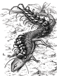 Еще один отряд губоногих – сколопендры (Scolopendromorpha), включает наиболее крупных представителей этого класса. Это ночные хищники, охотящиеся за крупными насекомыми и нападающие даже на мелких позвоночных животных. Сколопендры – поистине гроза для почвенных насекомых, мелких ящериц и другой напочвенной живности.