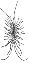 К губоногим относится еще отряд – мухоловок, или скутигер (Scutigeromorpha). Это теплолюбивые многоножки, на севере не встречающиеся. Скутигеры охотятся днем, и у них более, чем у других видов, выражены приспособления к жизни на суше. Это самые быстробегающие формы многоножек, охотящиеся за летающими насекомыми. У нас на юге (например, на Черноморском побережье) распространен вид обыкновенная мухоловка (Scutigera coleoptrata).