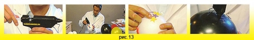 Не содержат растворитель, не нуждаются в смешивании и дозировании. Начинают плавиться под действием высокой температуры при помощи клеевого термопистолета, подающего горячий клей на склеиваемые детали (рис.13). Термоклей расплавляется при температуре 110°C (UHU LT 110 ) или 210°C (UHU Hot Melt HT210) .