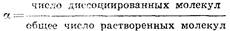 Степень диссоциации — отношение числа распавшихся молекул к общему числу молекул растворенного вещества: