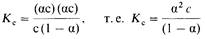 Это соотношение и представляет собой закон разбавления Оствальда. Константа Кс называется константой диссоциации электролита . Чем больше Kc , тем сильнее электролит.