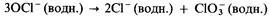3) при нагревании приблизительно до 75 °С он диспропорционирует на хлорид-ионы и хлорат (V)-ионы: