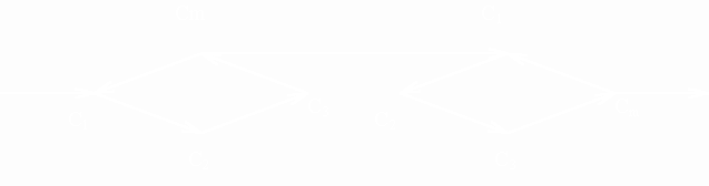 Например, в рассматриваемой ниже двухстадийной модели фазы C1 , C2 , C3 объединяются в одну по признаку их большой длительности и отсутствия деления на этих стадиях цикла. Разветвленный циклический граф, отображающий эту двухстадийную модель, имеет вид:
