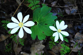 Сангвинария канадская (Sanguinapia canadensis) является эндемиком Атлантическо-Северо-Американской флористической области. Это многолетнее травянистое растение семейства маковых имеет высоту всего в 15-25см, и крупные, до 20см в поперечнике, листья. Цветки одиночные, ромашковидные диаметром 4-5см (до 7, 5). В момент цветения они слегка возвышаются над листьями, позднее наоборот оказываются под их прикрытием. Число лепестков в венчике колеблется от 7 до 12, но, обычно, их десять. Зацветает в начале мая, а уже к середине месяца лепестки опадают, и на их месте формируется плод – стручковидная коробочка. При созревании коробочка растрескивается на части, высыпая немногочисленные мелкие «маковые» шарики семян.