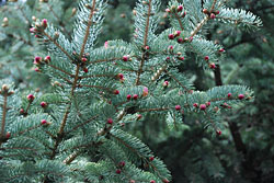 Ель сизая, она же канадская (Picea glauca) обитает на востоке Северной Америки, доходя на север до 64-й параллели. Хвоя у нее мягче чем у других елей, имеет сизовато-стальной оттенок, за что дерево и получило свой видовой эпитет – «сизая». Характерно, что на ветвях хвоинки направлены серповидно вверх. При растирании хвоя очень ароматная. Некоторые авторы описывают ее запах как неприятный, но лично я с этим категорически не согласен.