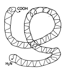 Вторичная структура — это спираль, или складчатая структура, удерживаемая водородными связями между атомами кислорода и водорода пептидных группировок разных витков спирали или складок. Третичная структура (глобула) удерживается гидрофобными, водородными, дисульфидными и другими связями.