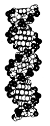 Структура ДНК была открыта Ф. Криком и Д. Уотсоном (Нобелевская премия по физиологии и медицине 1962 г.). Молекула ДНК представляет собой двуцепочечную спираль. Нуклеотиды соединяются между собой через остатки фосфорной кислоты, образуя фосфодиэфирную связь, при этом азотистые основания направлены вовнутрь. Расстояние между нуклеотидами в цепи равно 0, 34 нм.