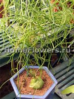 Стебель бовеи можно наматывать на опору или позволить ему свешиваться (в природе он стелется по грунту). При благоприятных обстоятельствах на концах веточек появляются невзрачные желтовато-зеленоватые цветки. Опылив их, можно получить семена.
