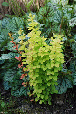 Не удержусь, еще раз перечислю достоинства свойственные всем барбарисам Тунберга. Они устойчивы к болезням и вредителям, невзыскательны к почвенному плодородию, засухоустойчивы, хорошо переносят городскую среду. Композиции с участием барбарисов Тунберга, способны существовать не год не два, а более двадцати лет. А это, согласитесь, — целая эпоха. Большинство сортов кустарника хорошо формируются и стригутся. Стрижка и совместное применение золотистых и краснолистных сортов этого же барбариса, способны на такие колоритные сочетания, что и цветам не снилось. Это притом, что работает барбарис Тунберга от развертывания листьев до листопада. Настаиваю, — «Марию» надо стричь. Стригите «Марию» и вы добьетесь необыкновенного эффекта. И не надо бояться своей неопытности, вертикальный характер роста сорта упрощает стрижку до предела.