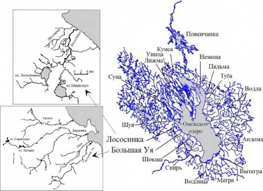 Известно, что многие притоки Онежского озера относятся к кумжевым рекам и ручьям, где происходит нерест озерной кумжи, а в некоторых обитает и жилая форма кумжи - ручьевая форель (Salmo trutta trutta L.) (Временные правила..., 2000). В этих реках вместе с молодью кумжи постоянно обитают такие виды рыб, как хариус, усатый голец и обыкновенный подкаменщик, а после весеннего паводка в реку на нерест мигрируют речная минога, обыкновенный гольян, трех- и девятииглая колюшка (Веселов и др., 1998; Веселов, Ефремов, 2010).