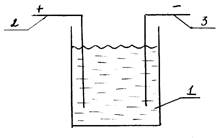 Состоит из корпуса 1, положительного электрода-анода 2, и отрицательного электрода-катода 3.