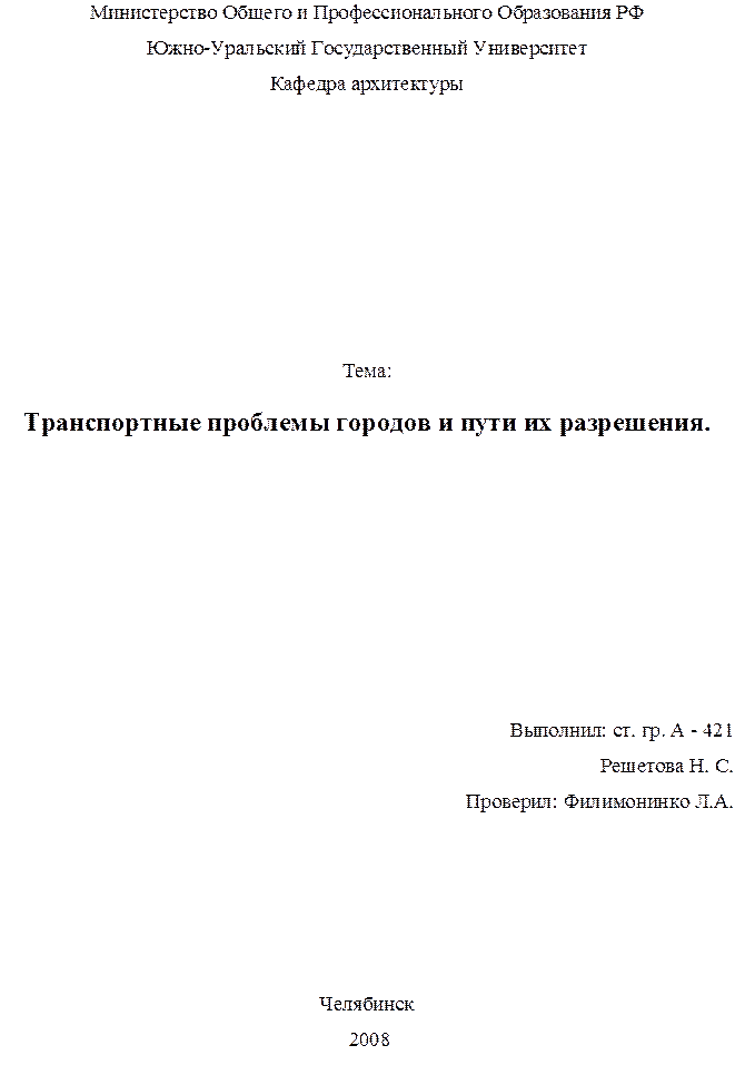 Реферат: Транспортные проблемы городов и пути их разрешения
