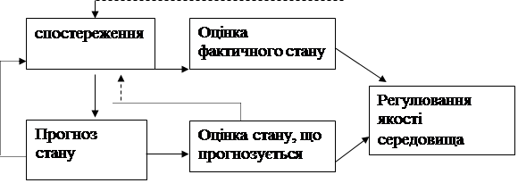Таким чином, моніторинг - це система спостережень, оцінки та прогнозу стану довкілля, що не передбачає управління якістю навколишнього середовища, прогнозом його стану з метою попередження його погіршення. Очевидно, що для правильної організації управління якістю навколишнього середовища необхідною умовою є організація системи моніторингу.
