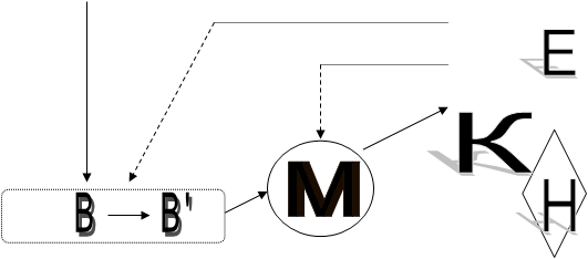 Ця інформація передається в блок керування (К) (прийняття рішень), див також мал 1. На основі цієї інформації в залежності від рівня науково-технічних розробок (Н) та економічних можливостей (з врахуванням еколого -економічних оцінок) (Е) вживаються заходи по припиненню або обмеженню антропогенного впливу, профілактичному “зміцненню” та подальшому лікуванню елемента біосфери. Безумовно, можлива комбінація згаданих вище підходів. Удосконалюється відповідно й система моніторингу (вказані дії показані на схемі штриховими лініями).