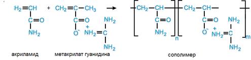 Это в свою очередь стимулирует исследования в области синтеза новых синтетических высокомолекулярных флокулянтов. Особое место среди флокулянтов занимают производные полиакриламида. Перспективными химическими структурами для получения новых производных полиакриламида являются гуанидинсодержащие соединения. Присутствие в элементарном звене полимеров гуанидиновой группы должно придавать им высокую биоцидную активность, так как хорошо известно, что соединения, содержащие в своем составе гуанидиновую группу, обладают широким спектром бактерицидного действия и используются в качестве лечебных препаратов, в том числе антибиотиков.