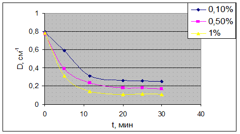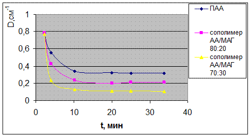 Данные, полученные этим методом, показали отсутствие в очищенной воде полимера, что свидетельствует о том, что в исследованных условиях сополимеры практически полностью взаимодействуют с коллоидными частицами.