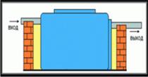 Размещение устройства над уровнем грунта Если возникает необходимость размещения сепаратора выше уровня грунта, нужно обязательно выложить по обе стороны устройства кирпичную стенку, а пространство между стенками и поверхностями сепаратора засыпать стабилизированным песком. |