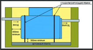 - закрепить на бетонной плите стабилизирующие ремни (расстояние между ремнями должно быть пропорционально длине сепаратора, количество - минимум 2 штуки),
