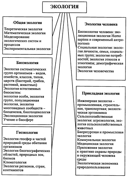 В течение второй половины XIX в. сложилось несколько крупных, относительно автономно развивающихся направлений экологических исследований, своеобразие каждого из которых определялось наличием у него специфического объекта изучения. К таковым с известной долей условности можно отнести экологию растений, экологию животных, экологию человека и геоэкологию.