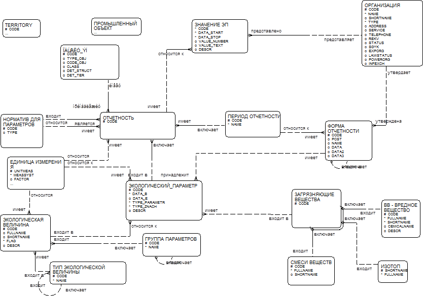 База данных была спроектирована в рамках проекта Экологического мониторинга Министерства атомной энергии и промышленности, и входит в систему экологического мониторинга ситуационно кризисного центра Минатома.
