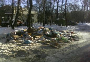 Что же эта проблема существует не только за городом но и в городе то же. Москва. Для примера я хочу взять среднестатистический девятиэтажный дом на Полярной улице. Вокруг этого дома располагаются 12 однокубовых9) контейнеров для мусора мусором в радиусе ста метров, которые, несмотря на большое кол-во, не справляются с поступающим. Контейнеры соединены по две и больше штуки в блок.10