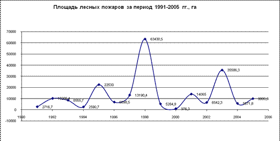 В осенний период основное количество лесных пожаров фиксируется в южной и центральной части края и по своему характеру они относятся к низовым устойчивым пожарам. (Графическое отображение количества и площадей пожаров за 15 лет рис. 2, 3)