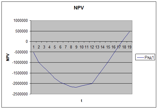 Где t – год, в котором NPV принимает последнее отрицательное значение.