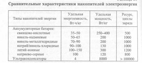 В табл. 9.7 приведены сравнительные характеристики различных накопителей энергии.