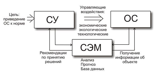 СУ - система управления (администрация губернатора, территориальное отделение Росприроднадзора и т.п.). ОС - окружающая среда. СЭМ - система экологического мониторинга. |