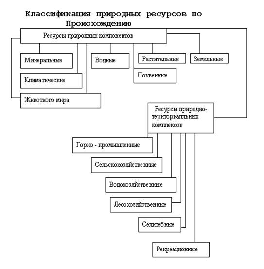 - Ресурсы природно-территориальных комплексов (горнопромышленные, водохозяйственные, селитебные, лесохозяйственные)