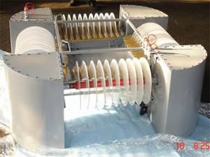 Нефтесборщик «Морская звезда» диаметром 5 м. Изготовлен из сварного алюминия, что облегчает его монтаж и позволяет быстро отделять нефть от воды в процессе сбора
