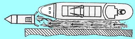 В качестве бонового выстрела может быть использовано штатное устройство судна, с установкой дополнительного узла крепления к корпусу судна