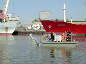 Особенностью катера "БП-690" является то, что он комплексно решает задачу борьбы с нефтеразливом: