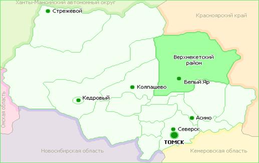 Карта Томской области (Верхнекетский район), вид из космоса [1]
