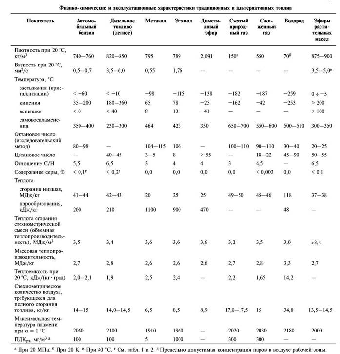 Во-вторых, следует принять во внимание то обстоятельство, что конструкторы двигателей стремятся наиболее полно использовать достоинства топлив и какими-либо техническими решениями компенсировать их недостатки. В свете такого подхода требуется более детально рассмотреть каждый вид топлива. Проблема адаптации новых топлив к существующим двигателям осложняется тем, что технический парк разрабатывался в расчете на жидкие нефтяные топлива, с ориентировкой на них и конструировались двигатели, создавалась инфраструктура, разрабатывались соответствующие теоретические положения, накапливался определенный практический опыт. Поэтому сегодня приходится идти на компромисс между требованиями к топливу, определяемыми существующими двигателями, и возможностями топлив особой природы. Заметим, что эта точка зрения не относится к продуктам ожижения углей (искусственное жидкое топливо), поскольку традиционными процессами нефтепереработки они могут быть превращены в топлива, полностью соответствующие нефтяным аналогам. Однако в случае использования других топлив, не похожих на традиционные углеводородные, возникают определенные требования, для соблюдения которых двигатель должен пройти небольшую модификацию, либо альтернативные топлива вводятся в стандартные топлива в количествах, не изменяющих их эксплуатационные свойства.