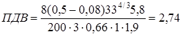 при 0,5 £ v м < 2 (0,5 < 0,76 < 2) n = 0,532 v м 2 - 2,13 v м + 3,13,