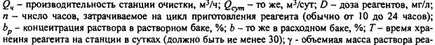 Объем растворного бака коагулянта рассчитывается по формуле: