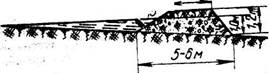 На склонах крутизной до 40 средне и слабо размытыми почвами почву готовят так же, как и при создании полезащитных полос. Участки с уклоном до 60 со средне- сильно размытыми почвами пашут на глубину гумусового горизонта с одновременным углублением до 35-40см. Склоны 60 и 120 обрабатывают полосами, бороздами или устраивают напашные террасы. Напашные террасы создают путем многократного прохода плуга по горизонталям с отваливанием пласта вниз по склону. Этот агроприем проводят до тех про, пока полотно напашной террасы будет иметь горизонтальную поверхность