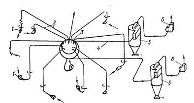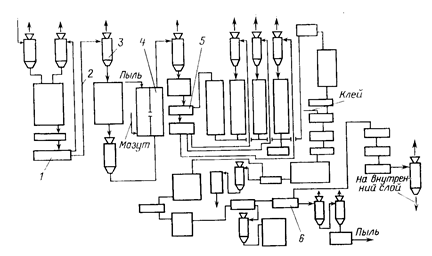 Рис. 4. Схема пылеулавливания при производстве ДСП: