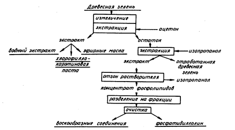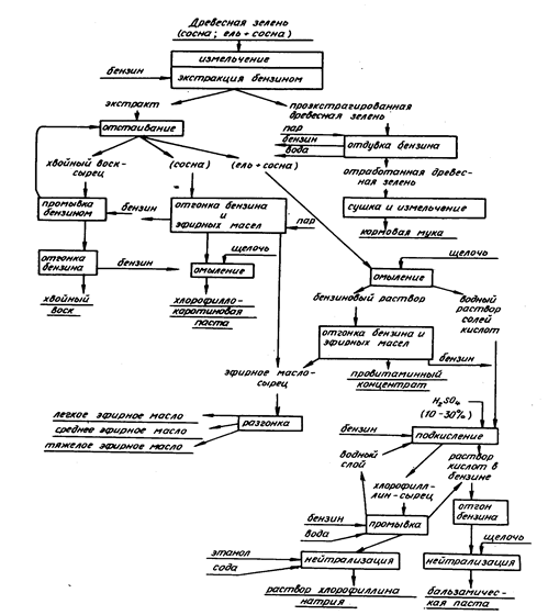 Рис. 9. Принципиальная схема переработки экстрактивных веществ древесной зелени сосны обыкновенной