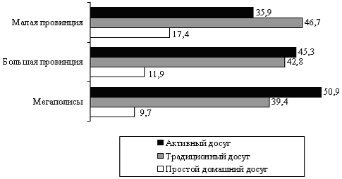 Какова же специфика повседневного досуга жителей мегаполисов и провинций в настоящий момент? Какой тип досуга более всего распространен в том или ином типе поселения?