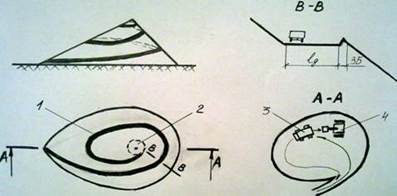 Рисунок 1 – Технологическая схема разборки породного отвала 1-въездная полутраншея; 2-рабочая площадка(плато);3-атомобиль; 4-экскаватор; lg-ширина дороги; ЗБ-защитная берма. Рекомендуемая блок-схема разборки вершины отвала: