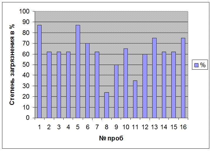 Таким образом, концентрация меди превышает ПДК в 15-ти пробах из 16, концентрация кобальта выше ПДК в 7 пробах из 16, никеля - в 14, цинка - в 15, свинца - в 10, хрома - в 1, а концентрация марганца ни в одной пробе не превышает ПДК.