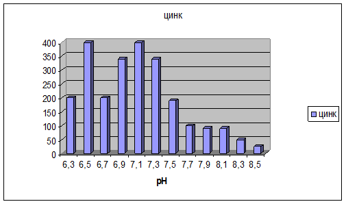 В приведенных выше графиках не сохраняется зависимость концентрации металла от рН почвы, что показана в таблице. Только для катиона цинка зависимость сохраняется. Это произошло потому, что концентрация металла больше зависит от антропогенного фактора, чем от рН почвы.