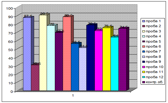 № 1. По рентгеновскому флуоресцентному анализу степень загрязнения примерно 86%, а по кресс-салату загрязнение слабое. Мы думаем, что это можно объяснить гумусированием почвы за счет биологических отложений реки.