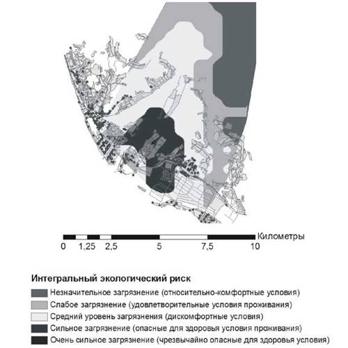 Рис. Интегральная карта экологического риска территории Адлерского района города Сочи