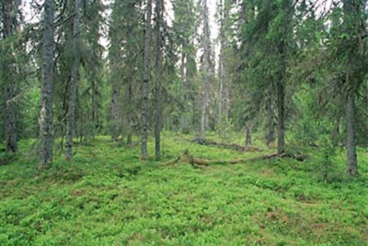 Например, участок леса в долине р. Вуокийоки в средней Карелии был охарактеризован несколькими исследователями как "коренной" или "девственный" ельник-черничник (рис. 34). Однако, когда в пределах этого леса (в рамках данной работы) на пробной площади 20х100 метров было произведено раскапывание всех микроповышений, было найдено 27 крупных пней сосны, местами со следами спиливания, а также не полностью разложившиеся вершинки, предположительно - от рубки 1900-1910 г.г. (что соответствует 135 деревьям на гектаре). То есть визуальная оценка этого леса позволила предположить его "девственность", а детальное исследование выявило признаки условно-сплошной рубки столетней давности. Вообще, "неявное" выделение фоновых видов антропогенных воздействий, которые не признаются значимыми, в большинстве случаев приводит к получению несравнимых результатов по разным регионам и в целом к невоспроизводимым результатам.