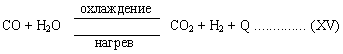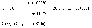 Процессы (XVI) и (XVIа) протекают при взаимодействии воздуха с раскаленным углеродом. В результате получается смесь СО+N2 , т.е. образуется генераторный газ. В итоге в отходящих газах из реактора содержится водяной газ: СО+Н2 и генераторный газ СО+N2 . Синтез аммиака из газообразных N2 и Н2 не происходит, т.к. этот процесс может происходить при низких температурах и при высоком давлении (7). При высоких температурах происходит разложение ОХИТ: