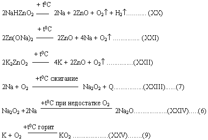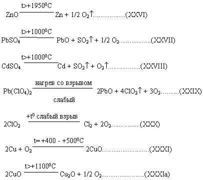 ZnO при +1950° возгоняется при более высокой температуре, разлагается до Zn и O2 (8):
